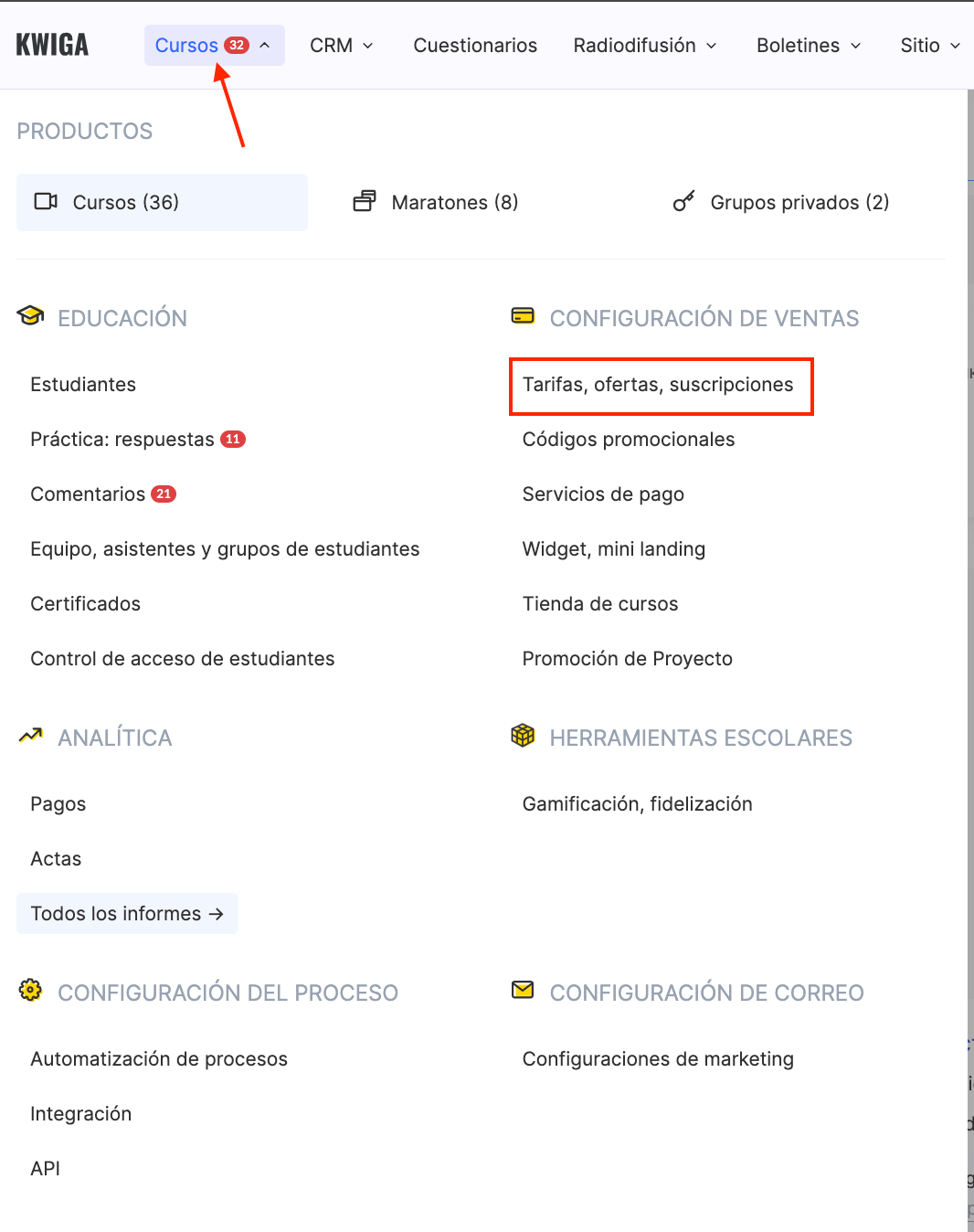 - Cómo crear ofertas de venta cruzada en Kwiga