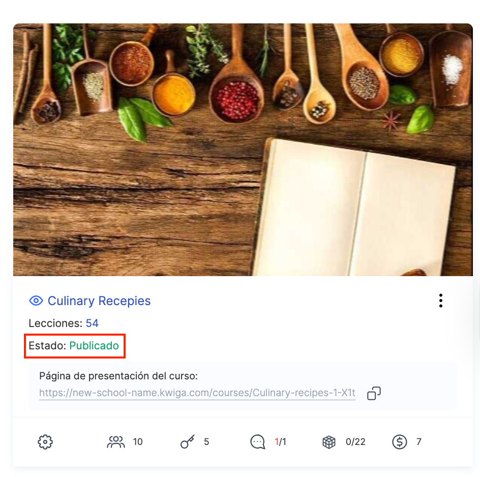 Si vendiste un curso fuera de la plataforma Kwiga, aún puedes conceder acceso fácilmente a los participantes. Antes de comenzar, asegúrate de que el curso esté configurado y publicado. Si el curso no está publicado, los estudiantes no podrán verlo. Puedes comprobarlo en la sección “Cursos”, revisando el estado del curso.