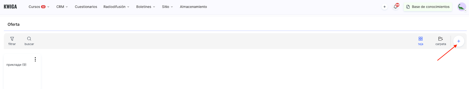 Haz clic en + para crear una nueva oferta.