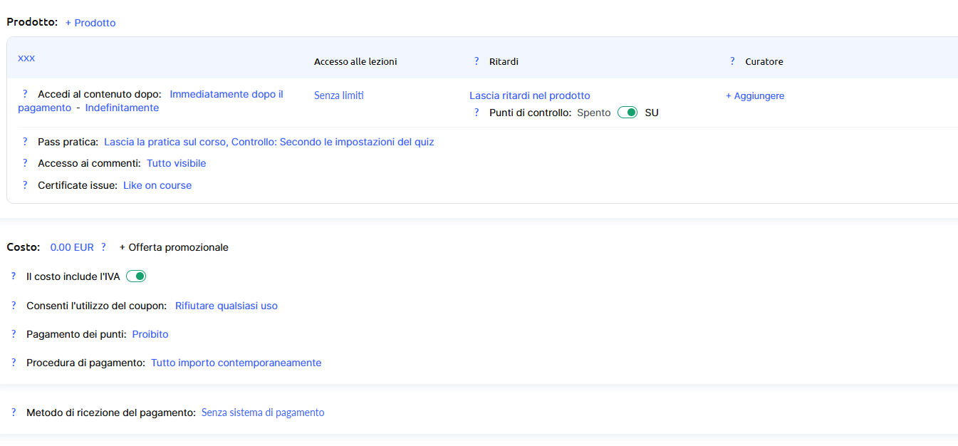 Nota: puedes añadir varios productos a una oferta, lo que significa que las estudiantes obtendrán acceso a varios productos después del pago. Estos pueden ser cursos, chats privados para las discusiones del curso, acceso a un canal de Telegram, etc.