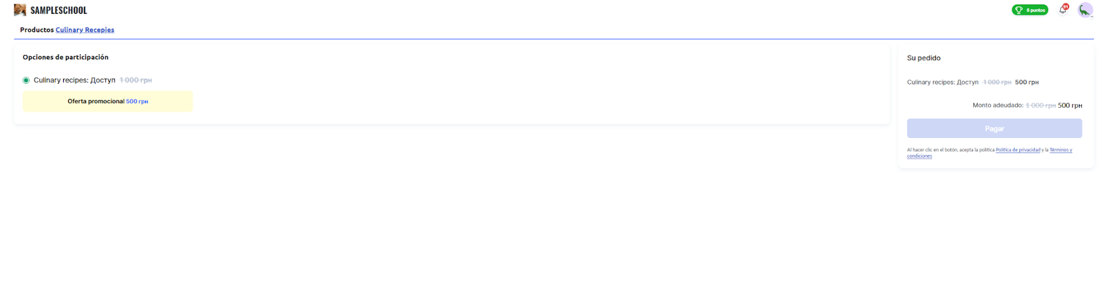 Cómo aparece para los estudiantes en el checkout