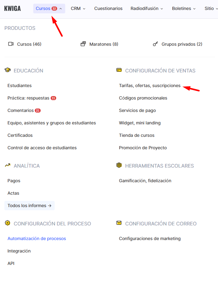 - Cómo crear ofertas de venta cruzada en Kwiga