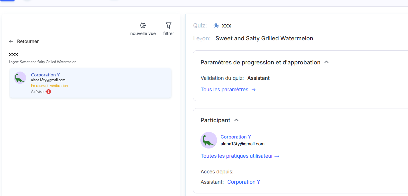 Trouvez la leçon souhaitée, sélectionnez l’étudiant et examinez ses réponses.
