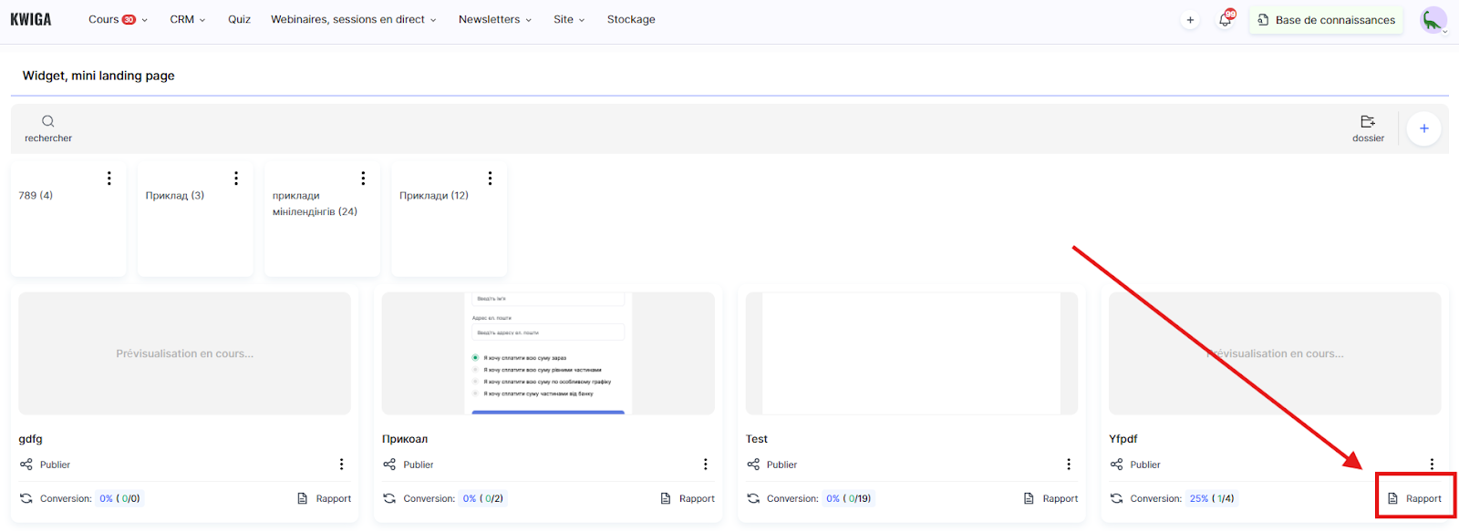 Un aperçu détaillé des rapports sur les widgets et mini-pages d’atterrissage : comment analyser les interactions des utilisateurs et suivre les conversions des formulaires de contact.