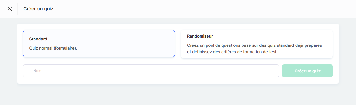Sélectionnez Quiz standard et saisissez le nom dans le champ correspondant.