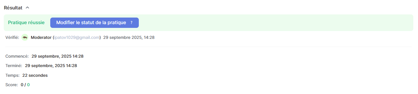 Une fois le quiz créé, vous pouvez l’ajouter à votre cours. Pour cela, ouvrez la leçon souhaitée en mode édition et ajoutez une activité de type Pratique. Vous trouverez un guide détaillé sur l’ajout d’activités dans notre article consacré à l’intégration des exercices.