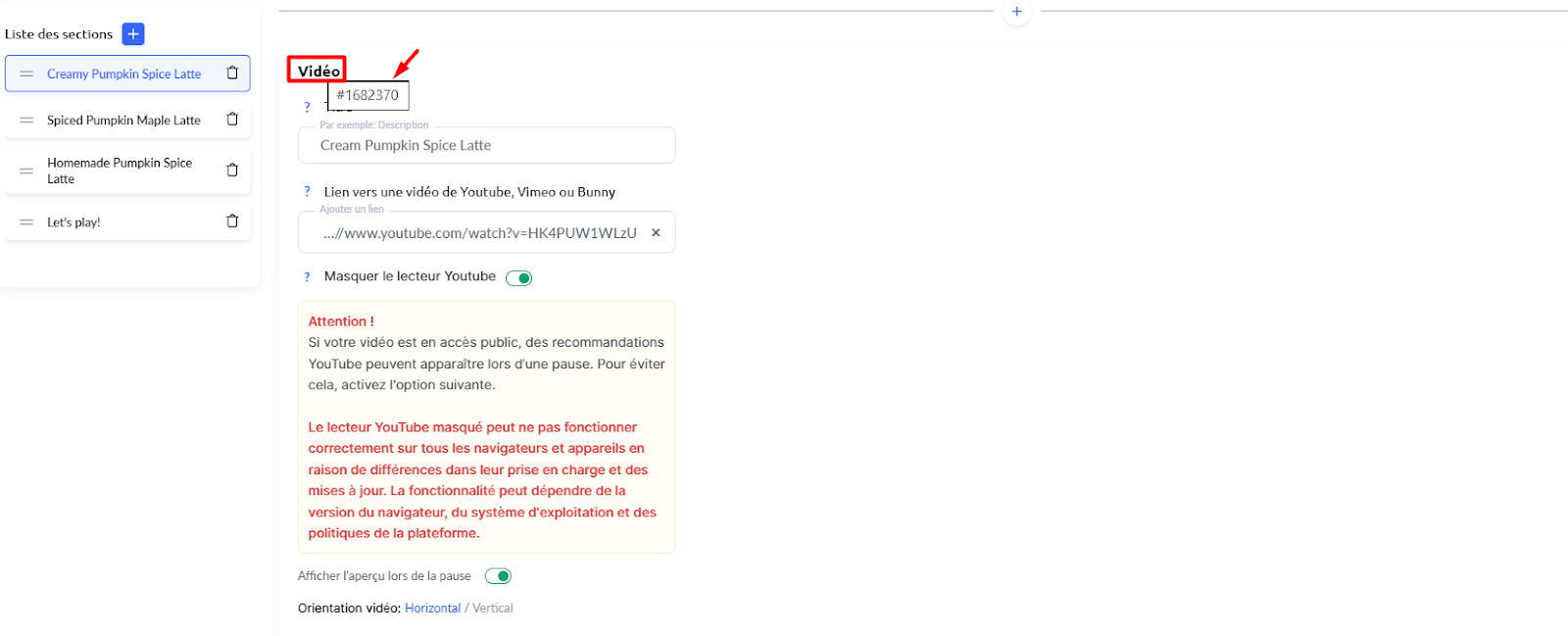 Vous devez ensuite déterminer l'identifiant unique de la vidéo sur Kwiga. Peu importe d'où la vidéo a été téléchargée (YouTube, mémoire, Vimeo). Suivez ces étapes :
