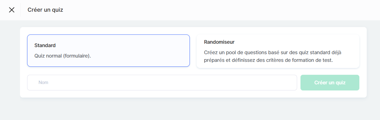 Ensuite, sélectionnez Quiz standard, indiquez son nom et commencez à le remplir.
