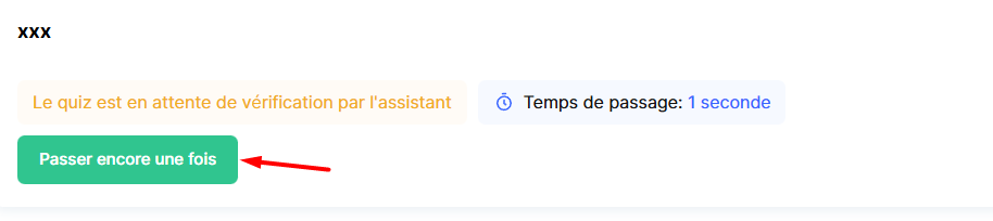 Quand un apprenant termine un devoir nécessitant une validation par tuteur, l’état Quiz en attente de validation par le tuteur apparaît.