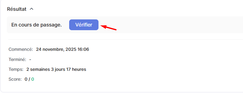 Cliquez sur Vérifier, indiquez le résultat, ajoutez un commentaire ou des points si nécessaire, puis enregistrez.