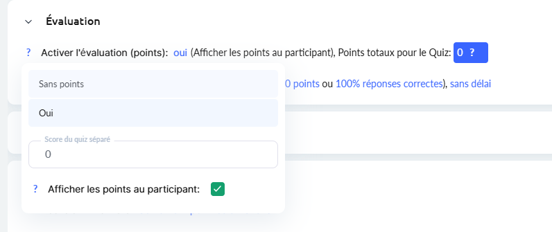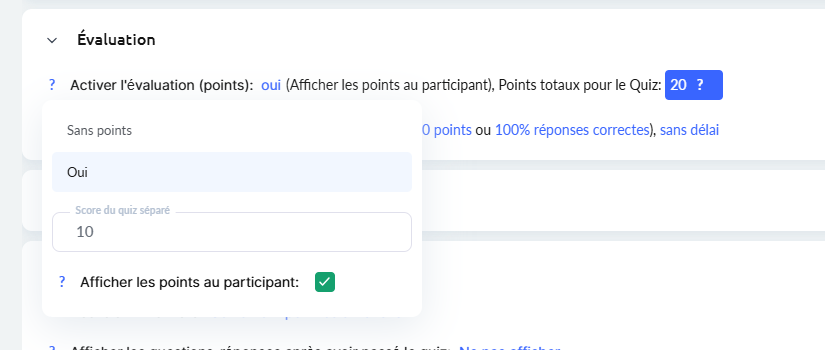Activer la notation (points) : choisissez si des points doivent être attribués aux réponses ou non.
