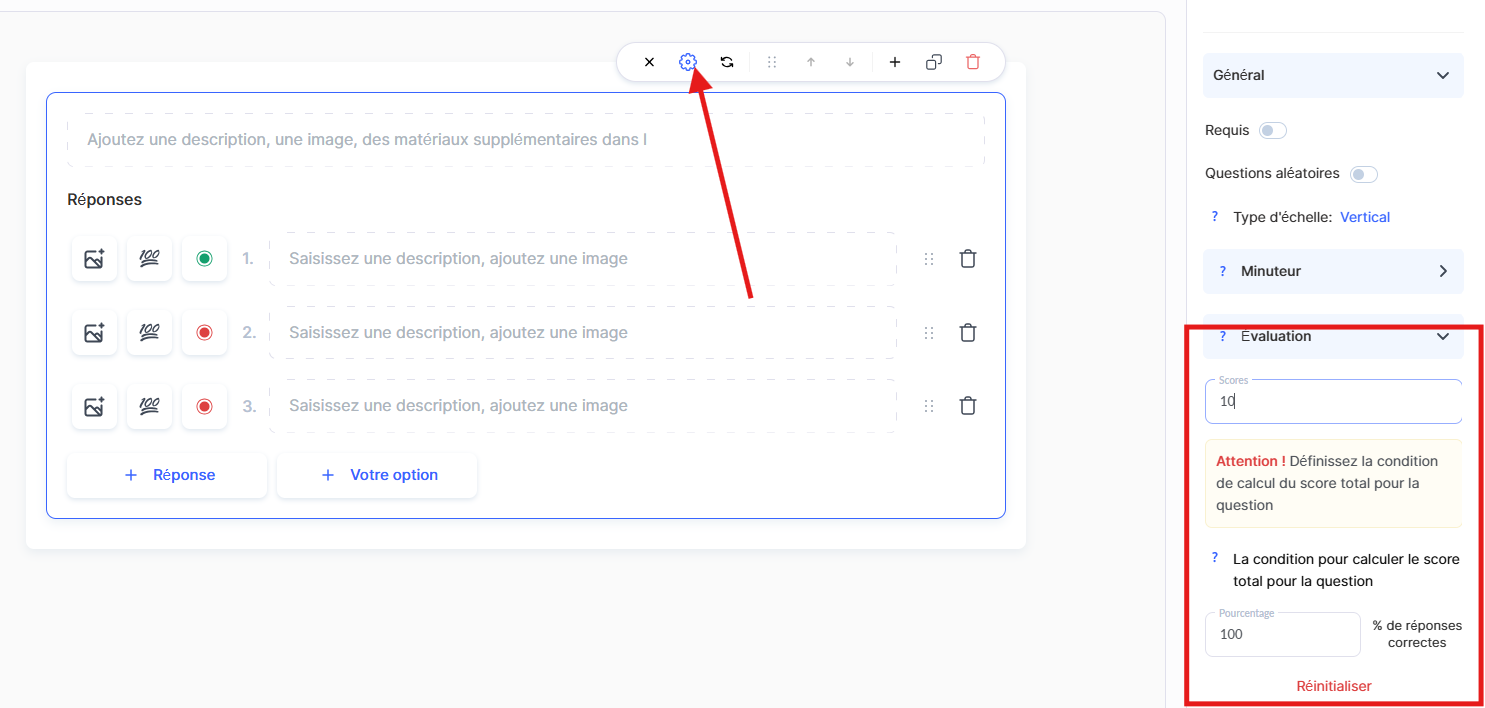 Pour chaque réponse, vous pouvez attribuer des points à l’option correcte