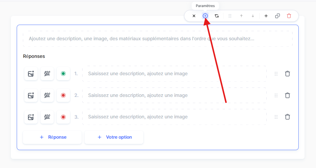 Pour supprimer une question, cliquez sur l’icône de la corbeille.