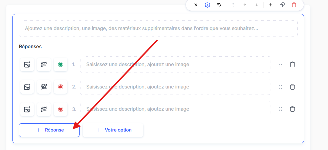 Ajoutez les options de réponse à l’aide du bouton + Réponse