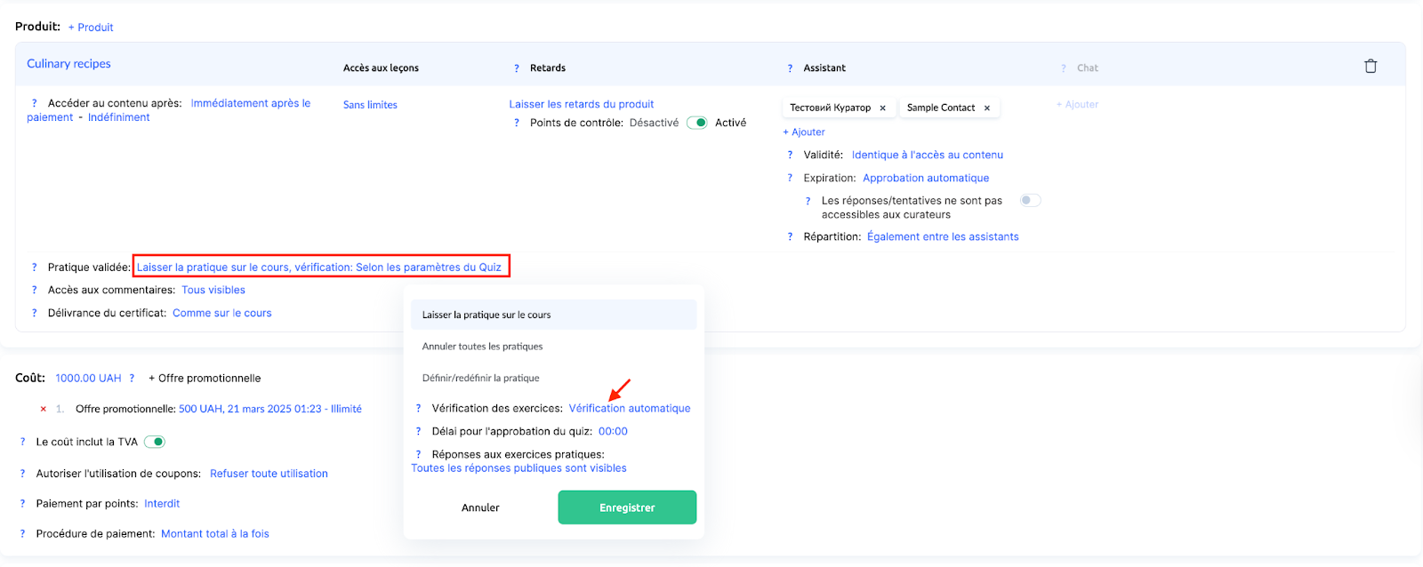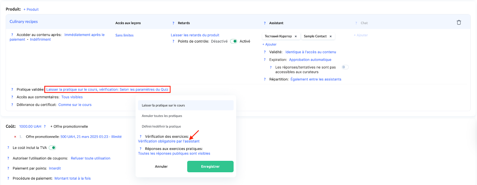 Pour les tarifs plus avancés, créez une offre distincte dans laquelle les devoirs seront vérifiés par un curateur (assistant). Cette approche permet d’obtenir un retour personnalisé et des recommandations.