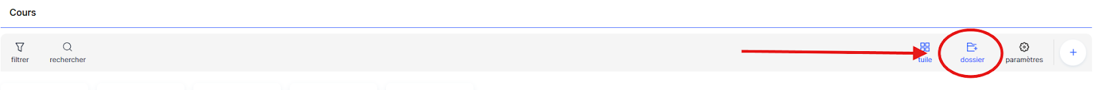 Pour ce faire, ouvrez le menu Cours et accédez à l’une des sections du bloc Produits — par exemple Cours — puis cliquez sur le bouton +Dossier, comme indiqué sur la capture d’écran :