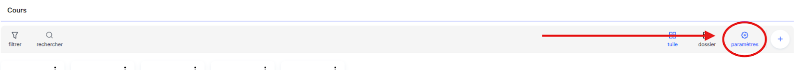 Pour ce faire, allez dans le menu Cours et accédez à l’une des sections du bloc Produits — par exemple Cours — puis ouvrez Paramètres.