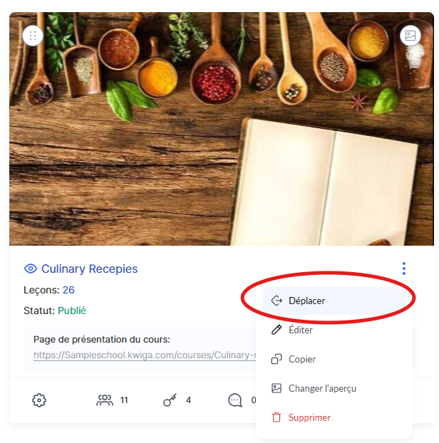Après cela, vous pourrez ajouter des cours au dossier en sélectionnant Déplacer dans le menu à trois points sur la carte du cours.