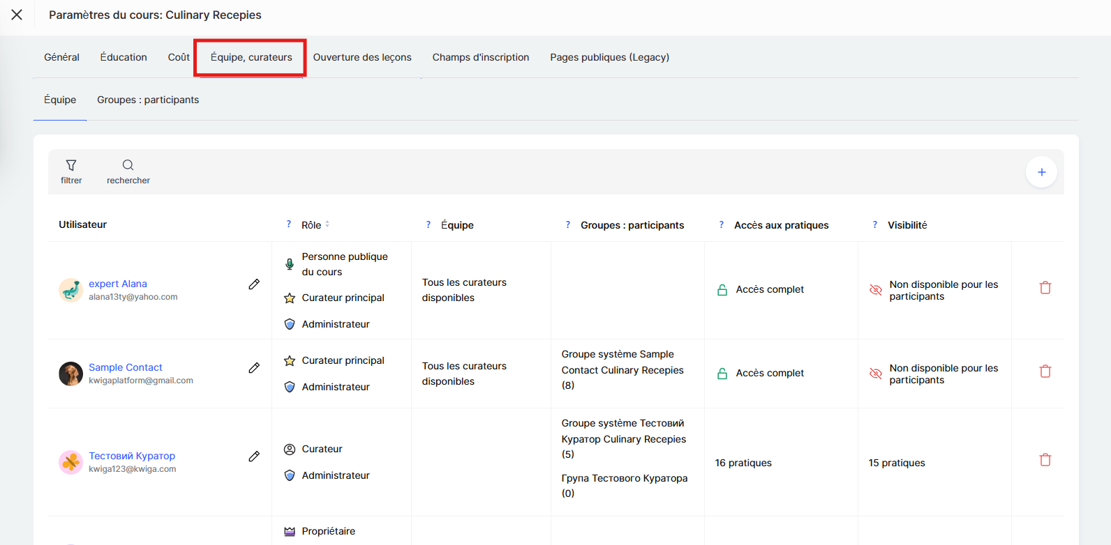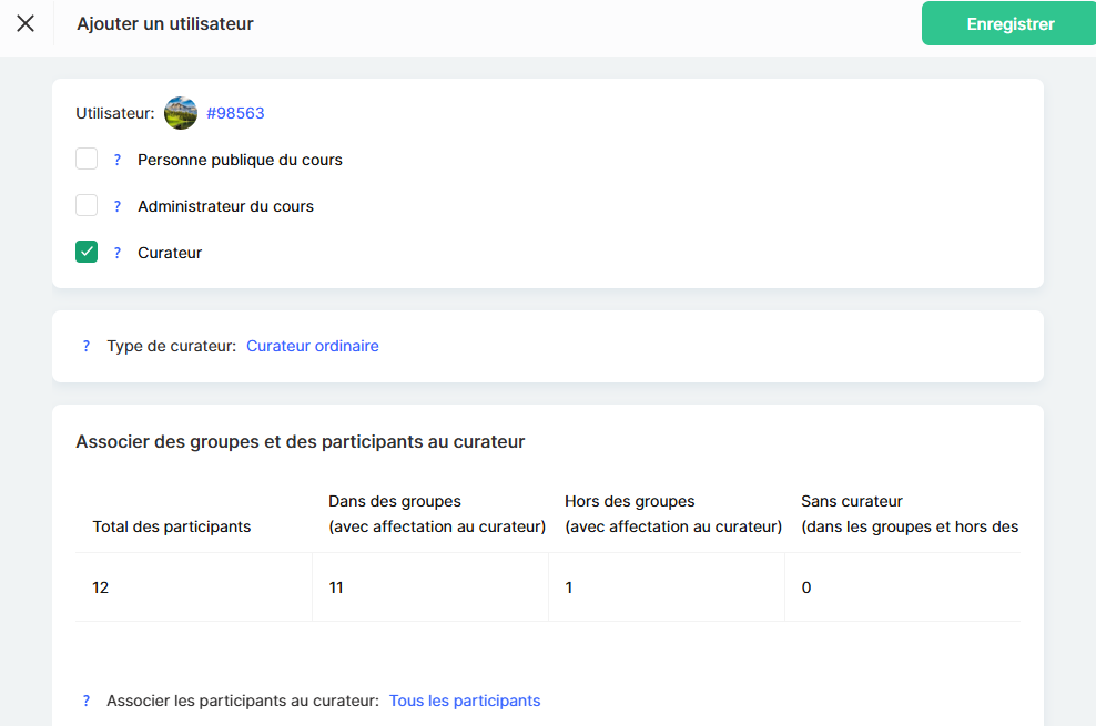 Si le cours est de petite taille, un assistant régulier peut suffire. En revanche, s’il s’agit d’un programme de grande envergure avec plusieurs assistants, le rôle d’assistant senior peut aider à optimiser le processus. Vous trouverez plus de détails sur la configuration d’une équipe pour un assistant senior dans un article séparé.