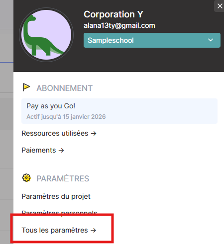 Commencez par cliquer sur l’icône de profil dans le coin supérieur droit de la plateforme. Sélectionnez ensuite Paramètres → Tous les paramètres → Équipe. C’est dans cette section que vous pouvez créer et gérer votre équipe.