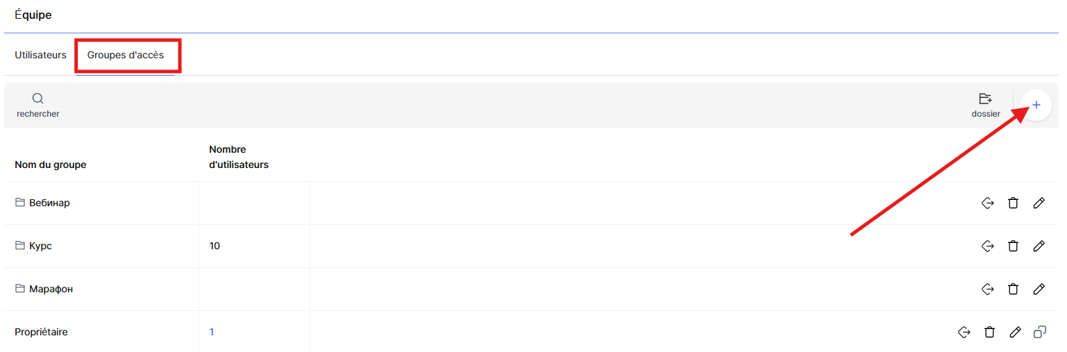 Dans l’onglet Groupes d’accès, créez un groupe qui définit les sections de la plateforme auxquelles vos collaborateurs auront accès.