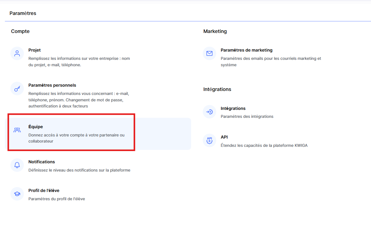 Une configuration correcte des droits d’accès vous aide à optimiser les flux de travail, à minimiser les risques et à améliorer la collaboration au sein de l’équipe. Utilisez les fonctionnalités de la plateforme Kwiga pour créer un environnement de travail confortable et sécurisé pour l’ensemble de votre équipe.