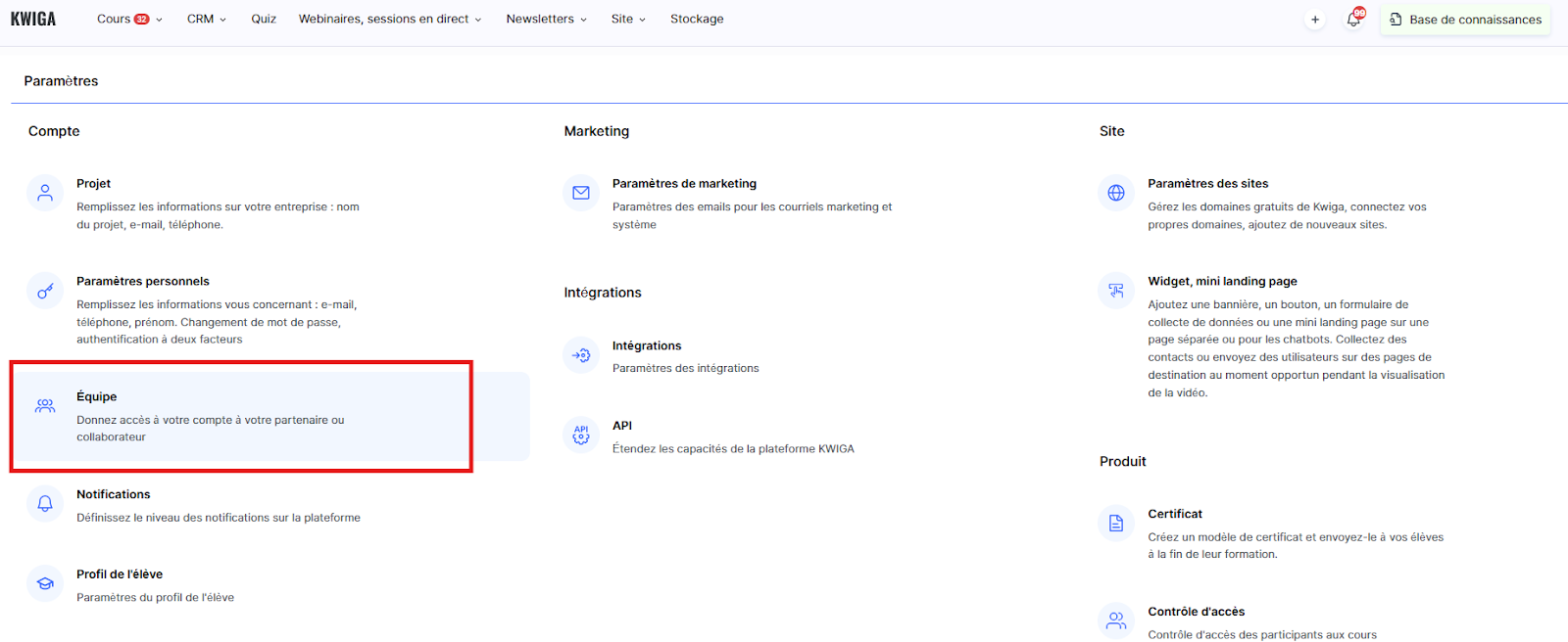 Sélectionnez la section Équipe – l’onglet Utilisateurs.