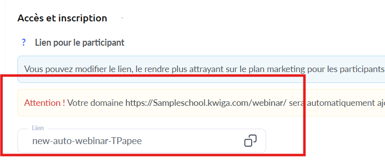 Un lien vers la page de présentation du cours sera généré. Tu pourras l’utiliser pour toucher ton audience.
