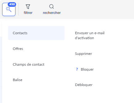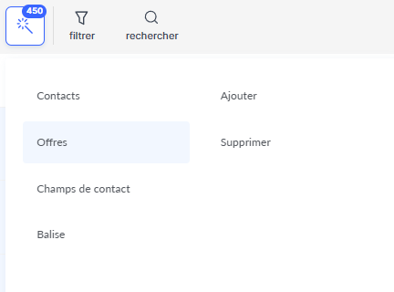 Les actions groupées font gagner du temps et simplifient la gestion de votre base de contacts en permettant de mettre à jour les données de nombreux clients d’un simple clic.