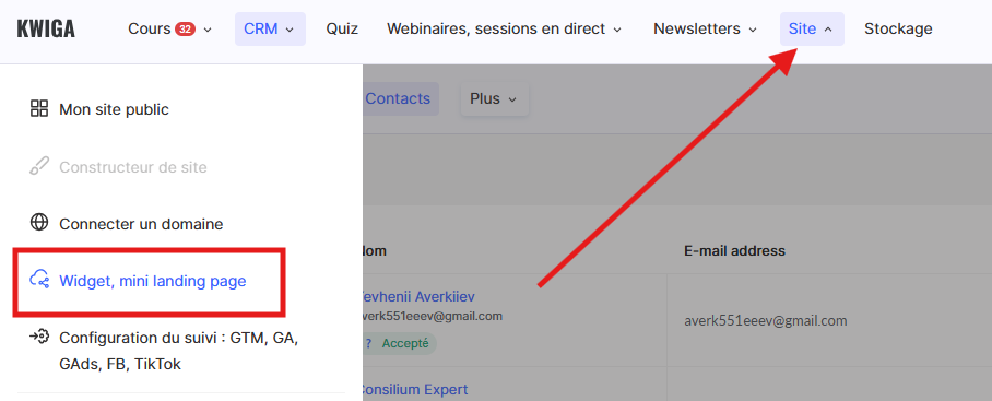 Le même principe de collecte de données s’applique également aux widgets : de petits formulaires d’inscription compacts pouvant être intégrés à n’importe quel site, landing page ou page partenaire. Ils sont idéaux pour attirer du trafic provenant de publicités ou de sources externes.