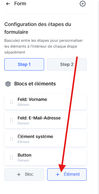 En mode édition, ouvre le bloc du formulaire et ajoute les champs que tu as créés précédemment. Tu peux modifier leur ordre, définir certains champs comme obligatoires ou les laisser facultatifs.