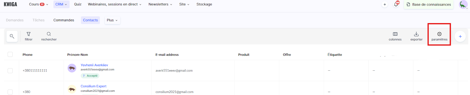 - Ajout de contacts depuis Google Forms et Google Sheets vers le CRM Kwiga