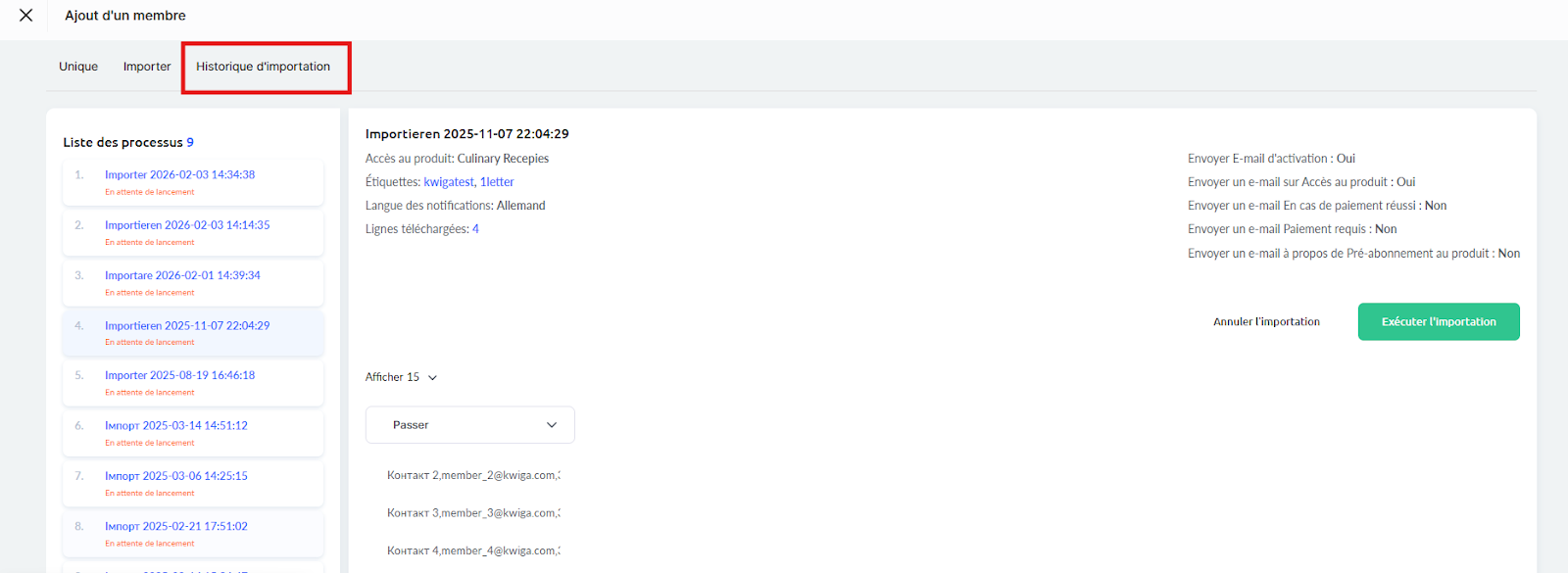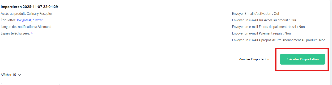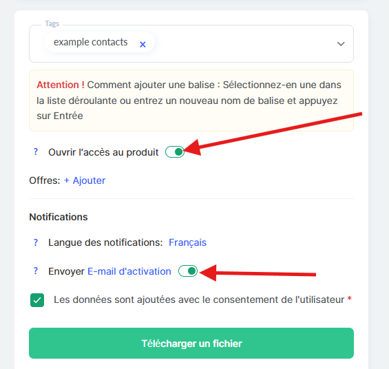 À cette étape, vous pouvez également ajouter des tags à tous les contacts du fichier et choisir d’accorder l’accès à un produit ou de désactiver les notifications d’activation par e-mail.