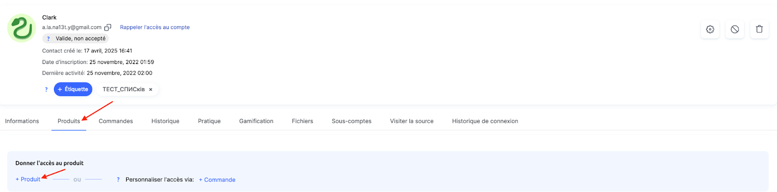 2. Accédez à la fiche de contact du participant et ouvrez l’onglet Produits.
