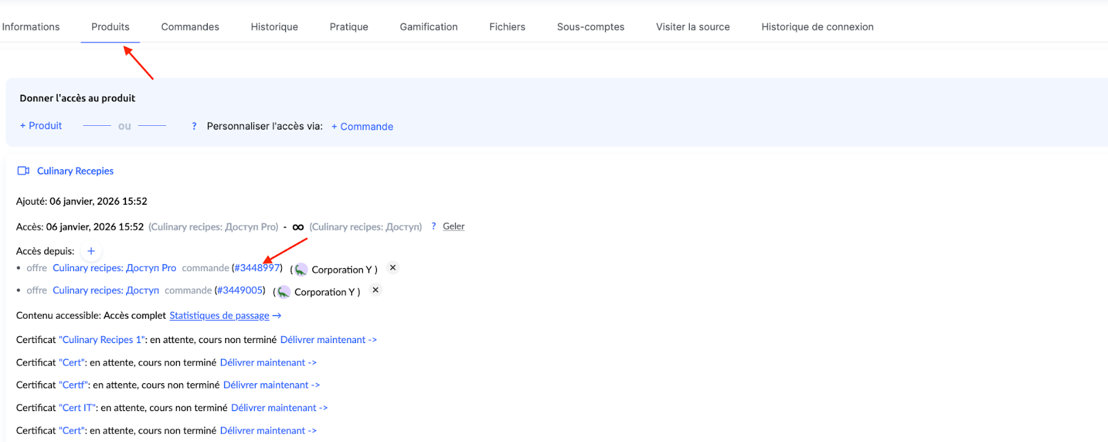 Si le participant a déjà accès au produit, mais que vous devez modifier cet accès, deux cas sont possibles :