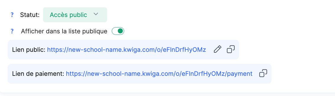 Rappelez-vous que Kwiga n’est pas un système de paiement. Si vous souhaitez que les étudiants obtiennent un accès automatique au cours après le paiement, vous devez connecter un système de paiement externe.