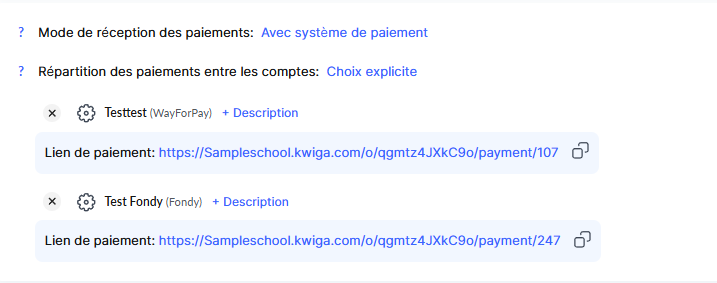 Si vous avez connecté plusieurs systèmes de paiement (ou plusieurs comptes au sein du même système), vous pouvez configurer une répartition automatique des paiements et définir des pourcentages de partage entre eux.