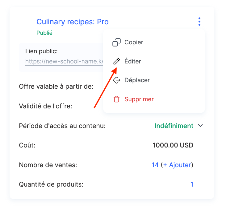 Y aura-t-il des modifications du cours lui-même ? Par exemple, des changements dans les vidéos, le contenu des leçons, les devoirs, le design ou les sessions Zoom programmées pour lesquelles des enregistrements ont ensuite été ajoutés, ou si vous souhaitez mettre à jour certaines leçons, introductions vidéo, etc. Dans ce cas, vous devez créer une copie du cours et de nouvelles offres.