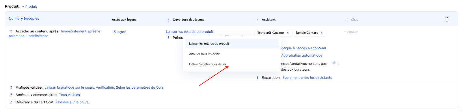 Recherchez la colonne des délais. Il est probable que l’option « Laisser les délais comme dans le produit » soit sélectionnée.