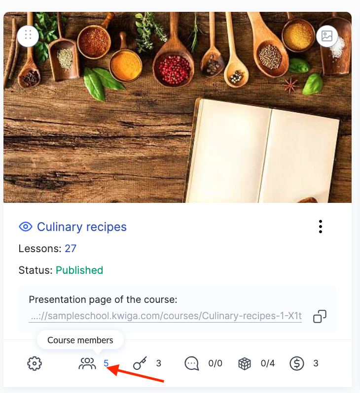 After launching the course and adding participants, all key data is displayed in the course details. To view it, go to the Courses menu, select the desired course, and open the Members tab.