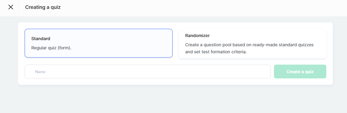 Next, select Standard Quiz, enter its name, and proceed to fill in the quiz.