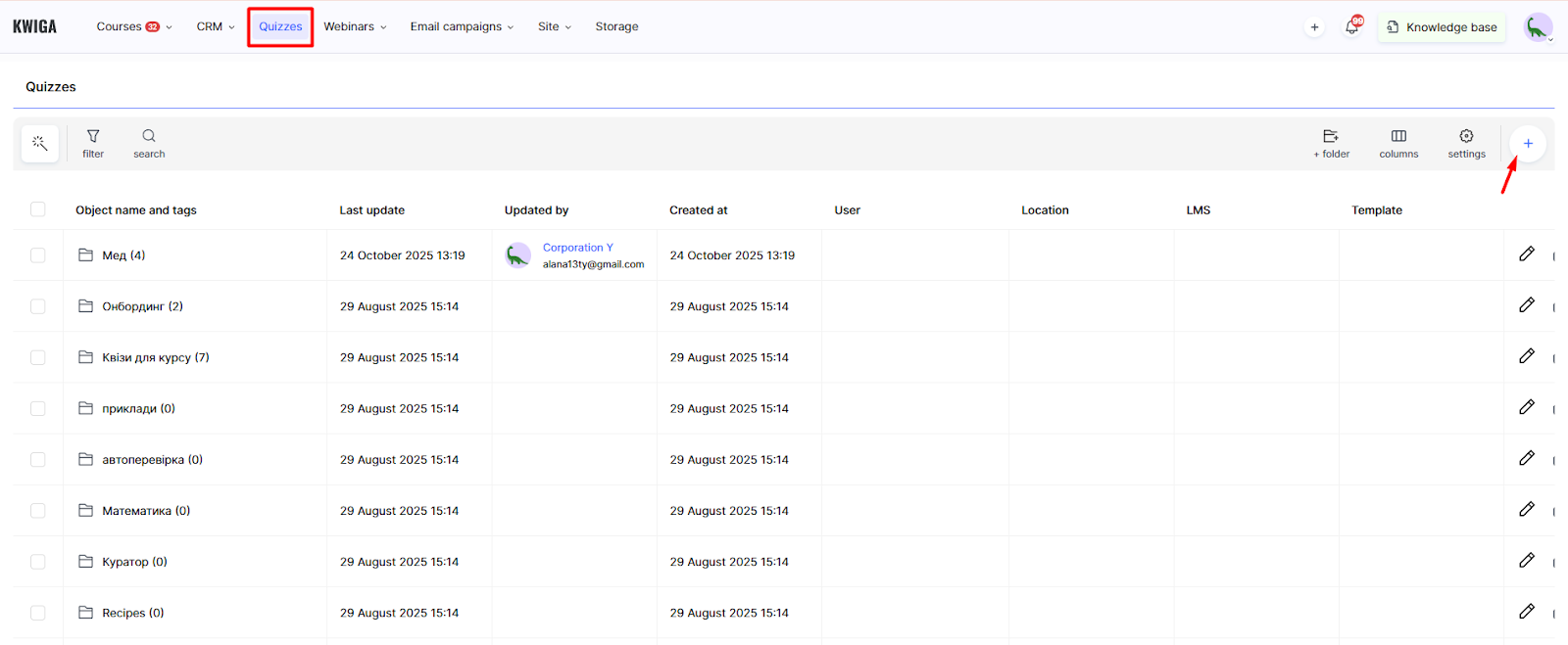 First, you need to create an assignment that will later be used in the course. Assignments are created separately from the course. Go to the Quizzes section and create a new assignment.