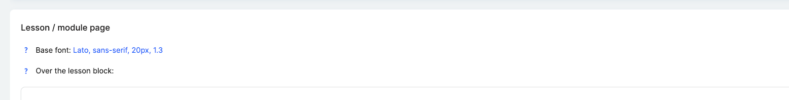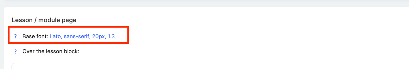 To configure this, go to the course settings, select the Public Pages tab, scroll down to the Lesson/Module Page section — the Base Font option.