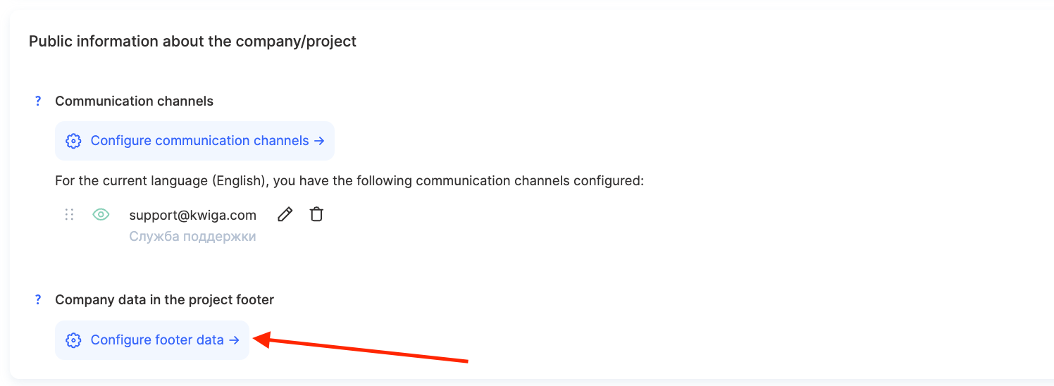 To configure the footer, click on the profile avatar and go to the Project Settings section.