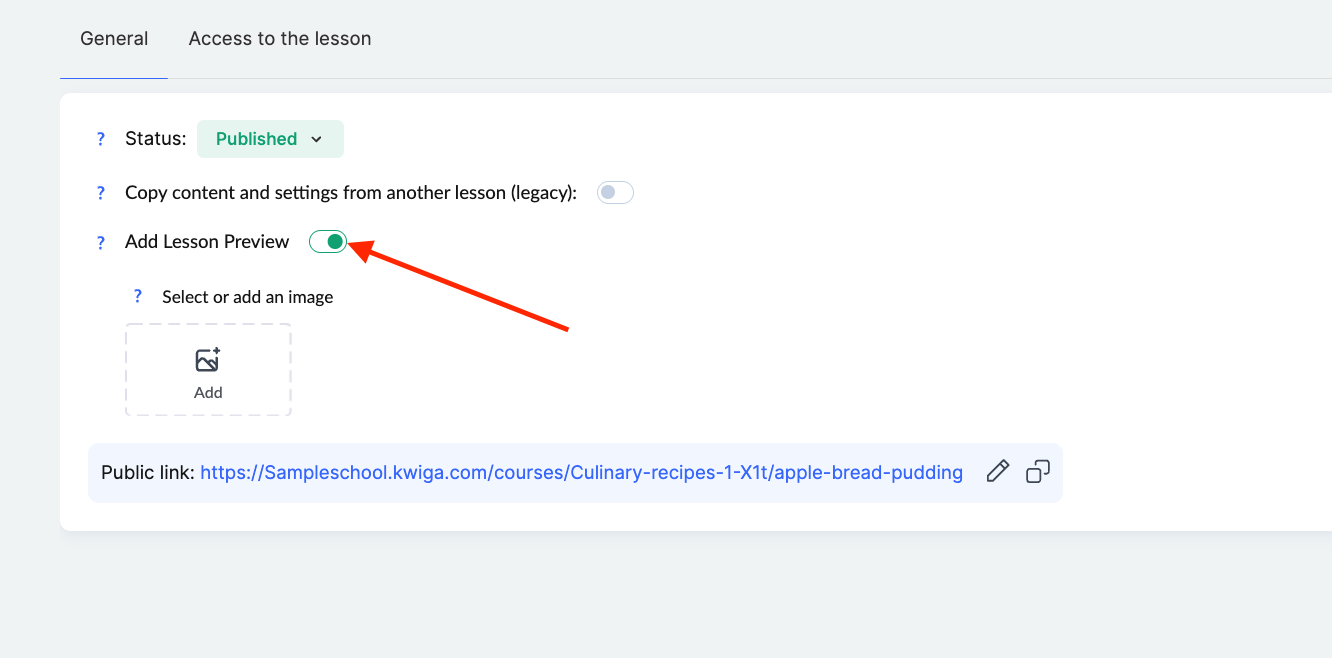 To make the course program even more structured, you can add a preview image to each lesson. It will be displayed next to the lesson title in the course program, helping students better navigate the material.