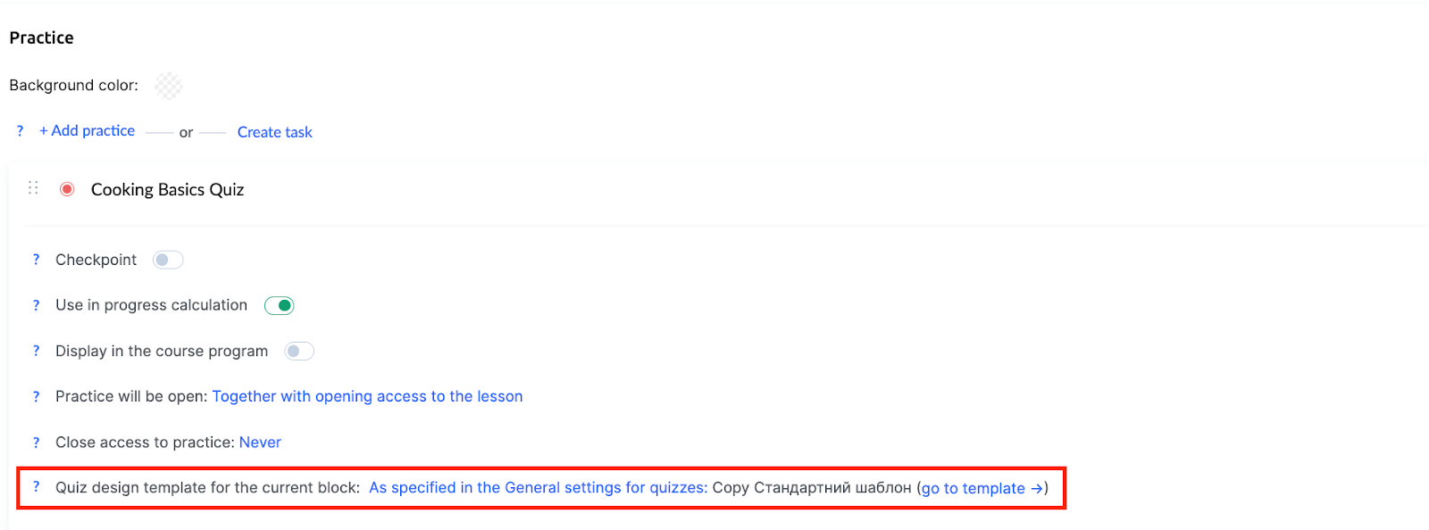 Recommendation: If the design of your quizzes is relatively consistent, we recommend creating one template and setting it as the default — it will then be automatically applied to all new quizzes, saving you from having to configure each one individually.