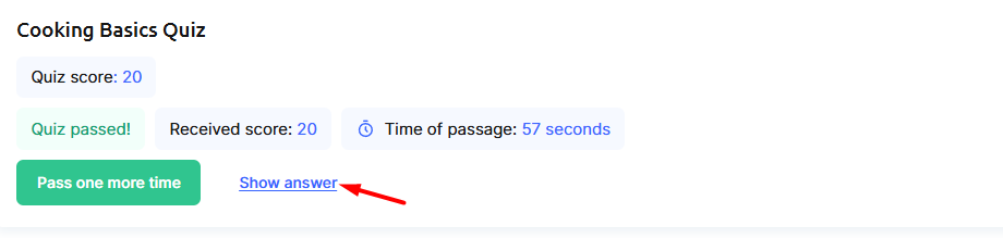 Often, a student completes a test, sees the grade, but doesn’t understand where exactly they made a mistake and why their answer is incorrect. Comments to answers help turn a simple knowledge check into a full learning tool that explains the logic behind the correct answers and reinforces the material.