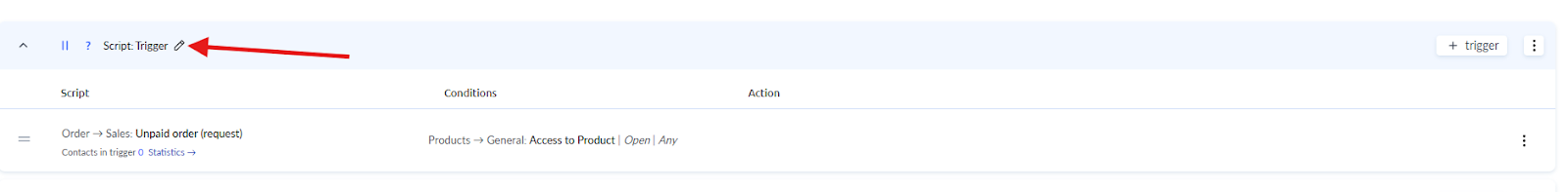 After setting up the first trigger, be sure to save it by clicking the corresponding button. The platform will record all event parameters, conditions, and actions.