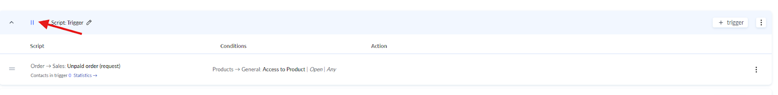 The number of triggers in a chain is unlimited. It is also possible to temporarily Pause a scenario and Resume it later if necessary.