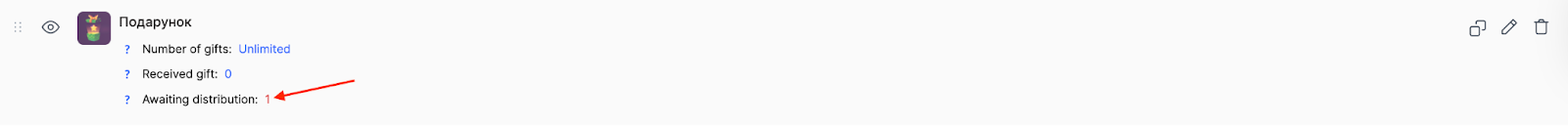 Shows the number of contacts waiting to receive the gift. This field is relevant only for gifts that require manual confirmation by an administrator. When a student exchanges points for such a gift, they are added to this counter and remain there until the administrator confirms delivery. This indicates that the reward requires additional action on your part—for example, arranging delivery of a physical item or scheduling an individual consultation.